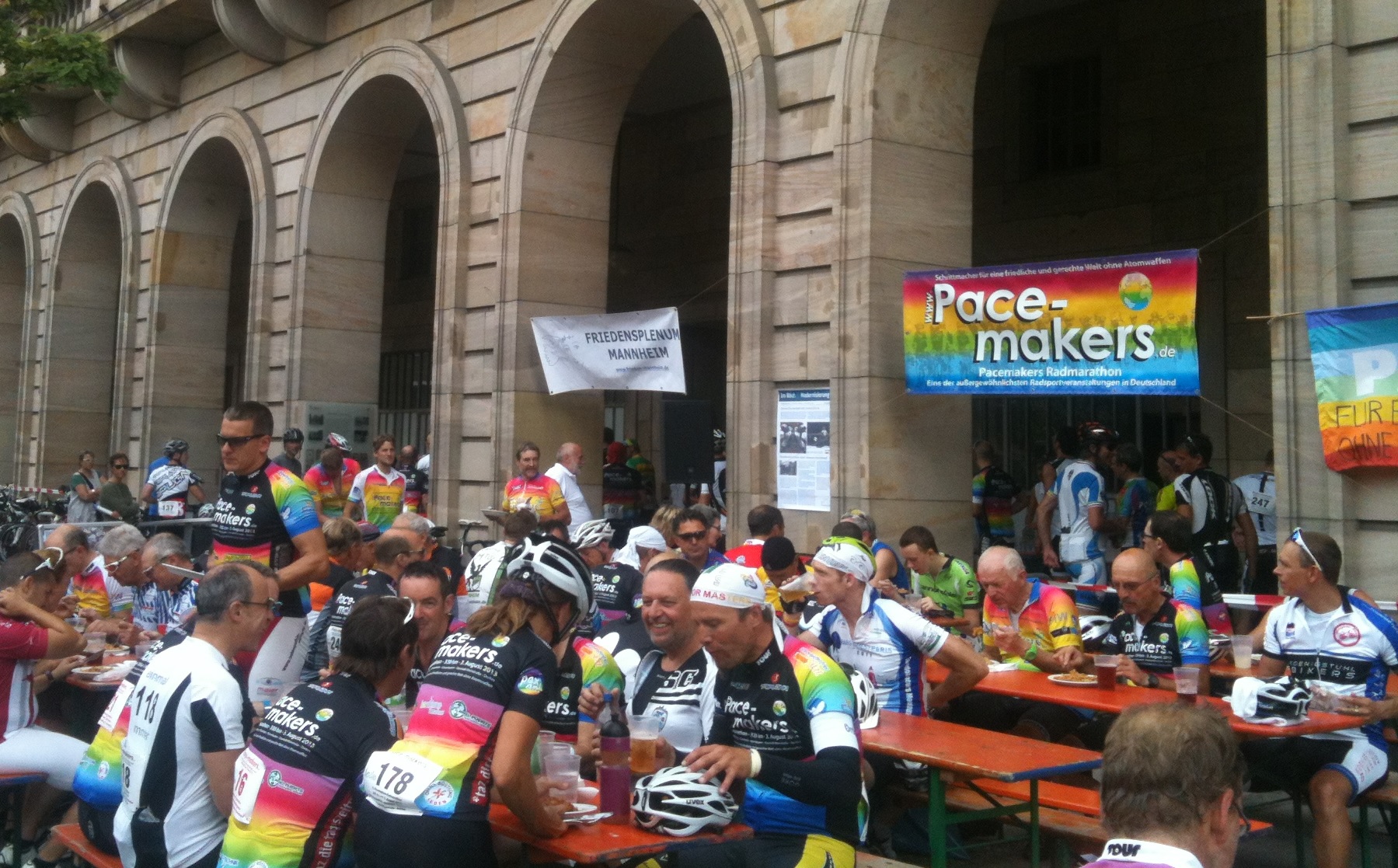 Mannheim war bereits zum siebten Mal eine Etappenstation des Pacemakers Radmarathons und genauso oft war Oberbürgermeister Dr. Peter Kurz einer der Schirmherren der Veranstaltung. Praktisch bedeutet das, dass die SportlerInnen in der Quadratestadt immer gutes Essen und Kuchen und Durst löschende Getränke erwarten durften.