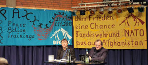 Über 40 Besucher kamen am 4. März 2010 ins Forum Jugendkulturzentrum, um einem sehr informativen Vortrag zuzuhören. Pflüger verdeutliche die zentrale Rolle die Bundeswehr für die Logistik des Kriegseinsatzes und informierte über die Entscheidungen im Hintergrund bei der Bombardierung von zwei Tanklastzügen bei Kundus. Bei dem von Bundeswehr-Oberst Klein angeforderten Bombardement sind 140 Menschen umgebracht worden. Wie viele Ziviltote der Kriegseinsatz verursacht hat und welche Interessen die Bundesregierung verfolgt, sprach er ebenfalls an.
